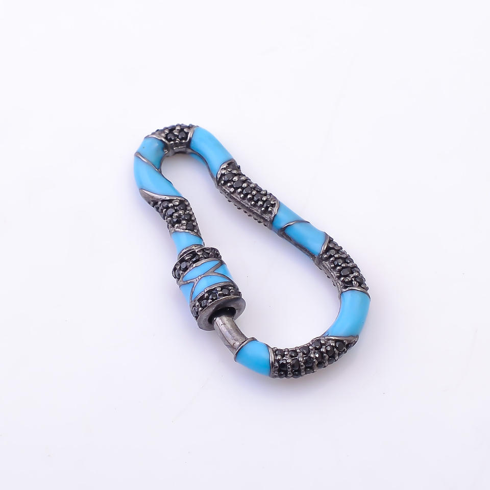925 Sterling Silver Enamel Carabiner Lock Clasp Finding Jewelry Fine Silver Pave Natural Black Spinal Gemstone Screw Lock Clasp