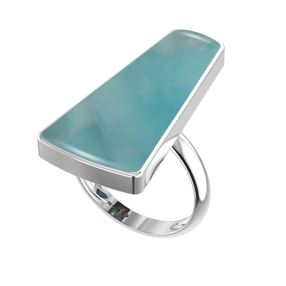 925 Sterling Silver High Finish Engagement Ring Bezel Setting Larimar Oval Cut Trillion Tie Classic Style Positive Energy Ring
