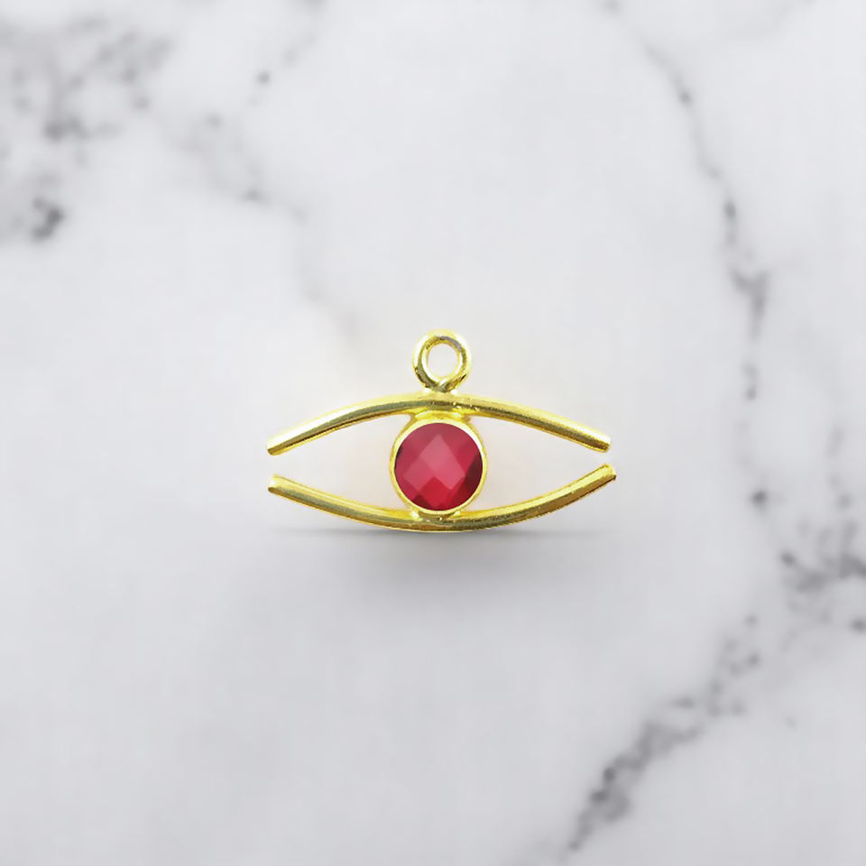 925 Sterling Silver Evil Eye Marquise Connector with Pink Tourmaline Gemstone Faceted Diamond for Children's Jewelry Making