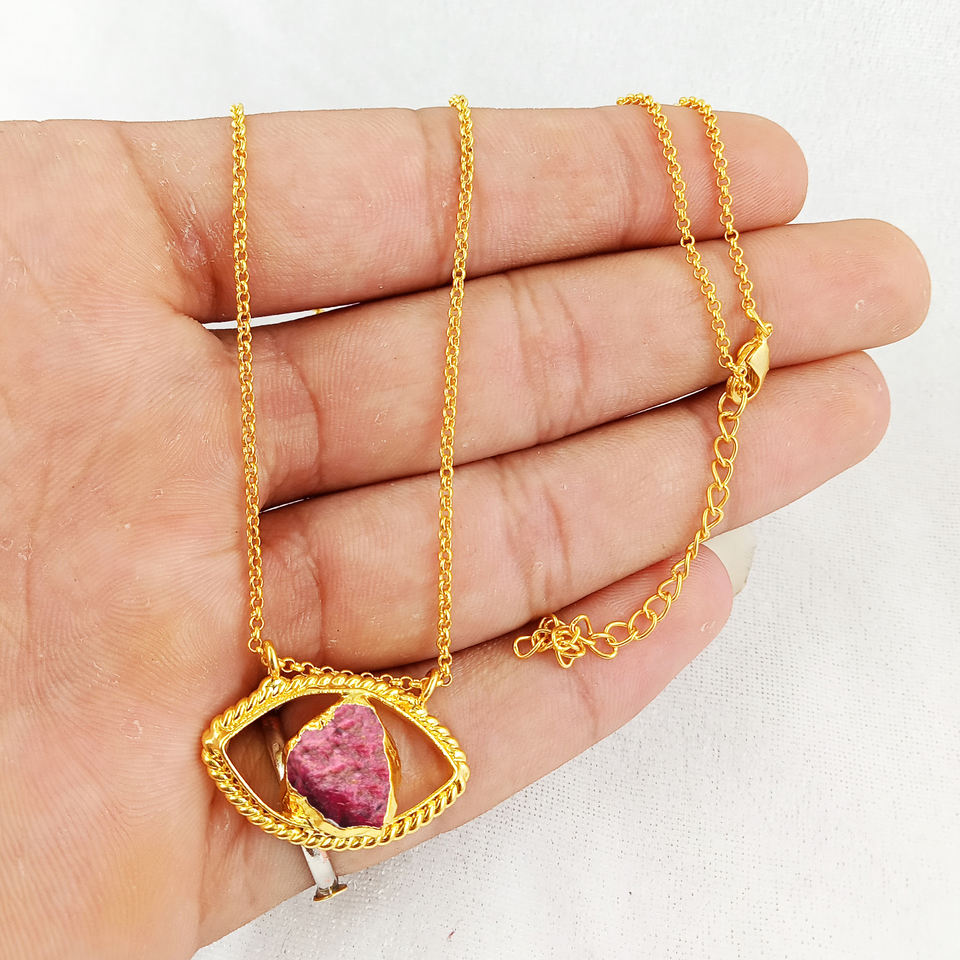 925 Sterling Silver Evil Eye Pendant Necklace Birthstone Garnet Raw Ruby Gold Vermeil Natural Stone Raw Stone Stainless Steel