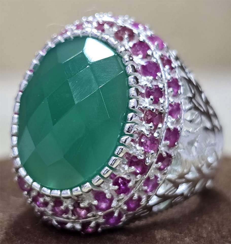 925 Sterling Silver Excellent Quality Handmade Eternity Vermeil Ring Oval Shape Green Onyx And Round Shape Ruby Gemstone