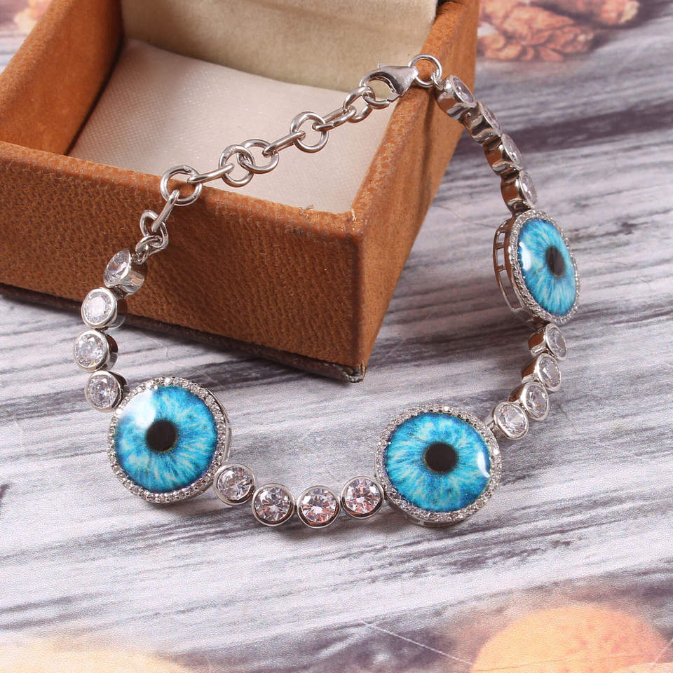 925 Sterling Silver Eye Charms Bracelet with White CZ Fine Bezel Setting Jewellery for Party Engagement or Gift