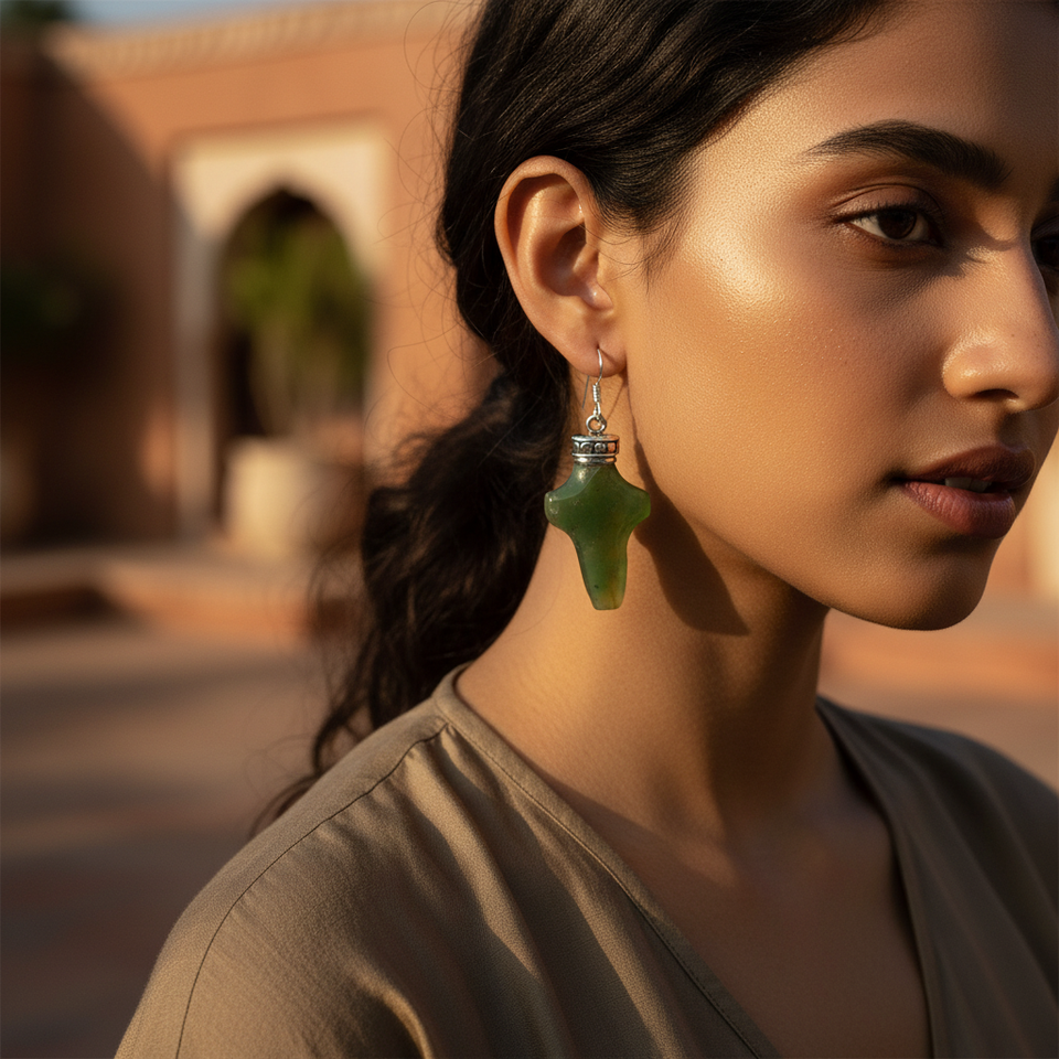 "925 Sterling Silver Fashion Green Jade Drop Earrings for Her"