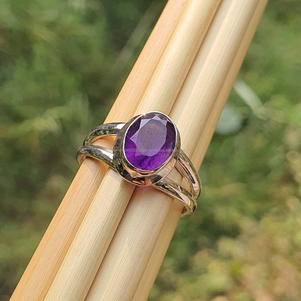 Natural Purple Amethyst 925 Sterling Silver Ring
