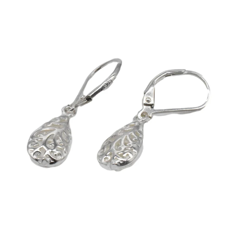 925 Sterling Silver Filigree Drop Earrings Water Drop Plain Lever Back Handmade Tear Drop Dangle Jewelry Wholesale Price