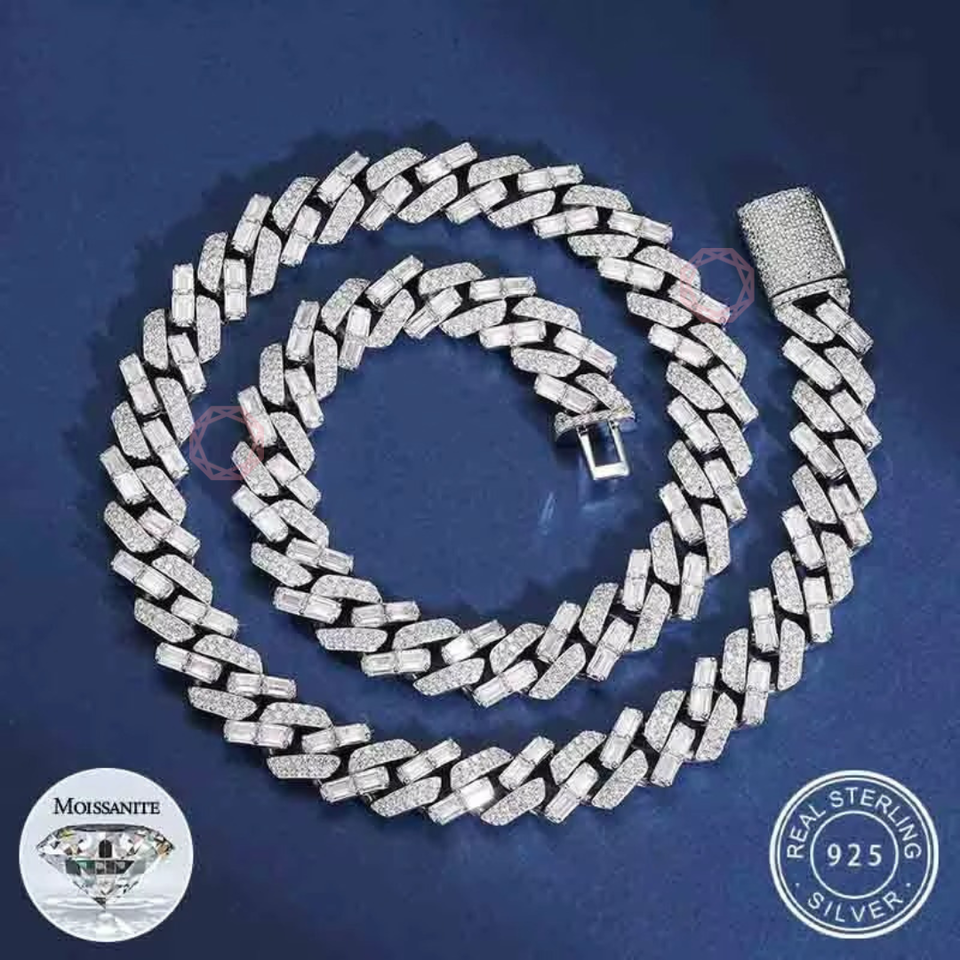 925 Sterling Silver Fine 18k Gold plated D VVS Natural Baguette Moissanite Lab Grown Diamond Hip-Hop Necklace Link Chain for men