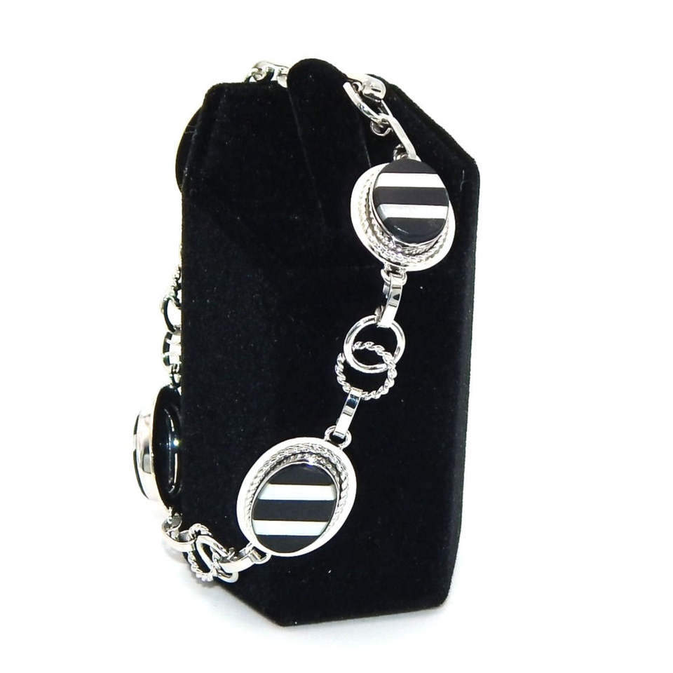 925 Sterling Silver Fine Beaded Bracelet with Mother of Pearl and Black Onyx