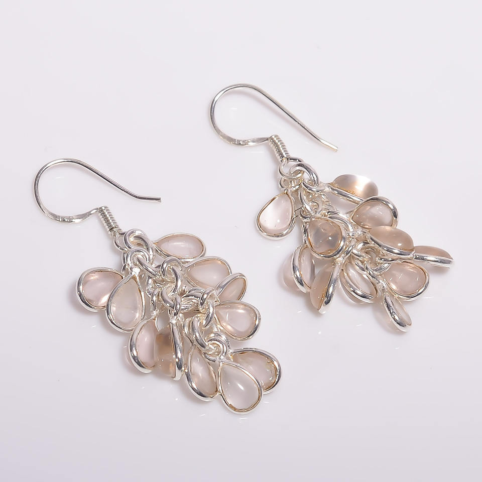 925 Sterling Silver Fine Dangle Drop Earrings Classic Style with Dazzling Rose Quartz Gemstone Accessory