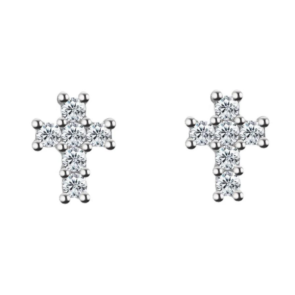 925 Sterling Silver Fine Fashion Cross Stud Earrings with Natural Diamond for Wedding Occasions for Women and Men