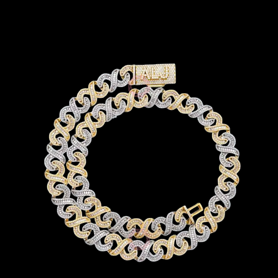 925 Sterling Silver Fine Gold plated VVS Natural Moissanite Lab Grown Diamond Hip-Hop Infinity Necklace Link Chain for men/Women