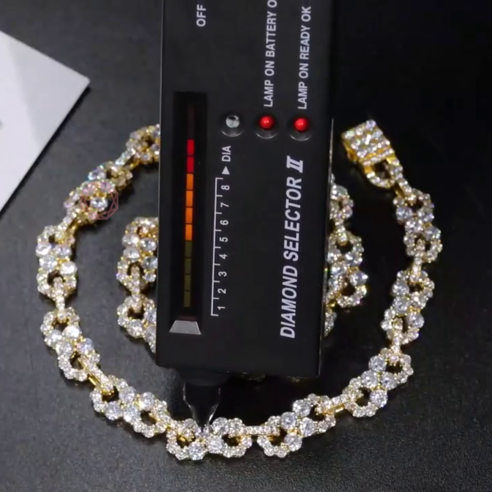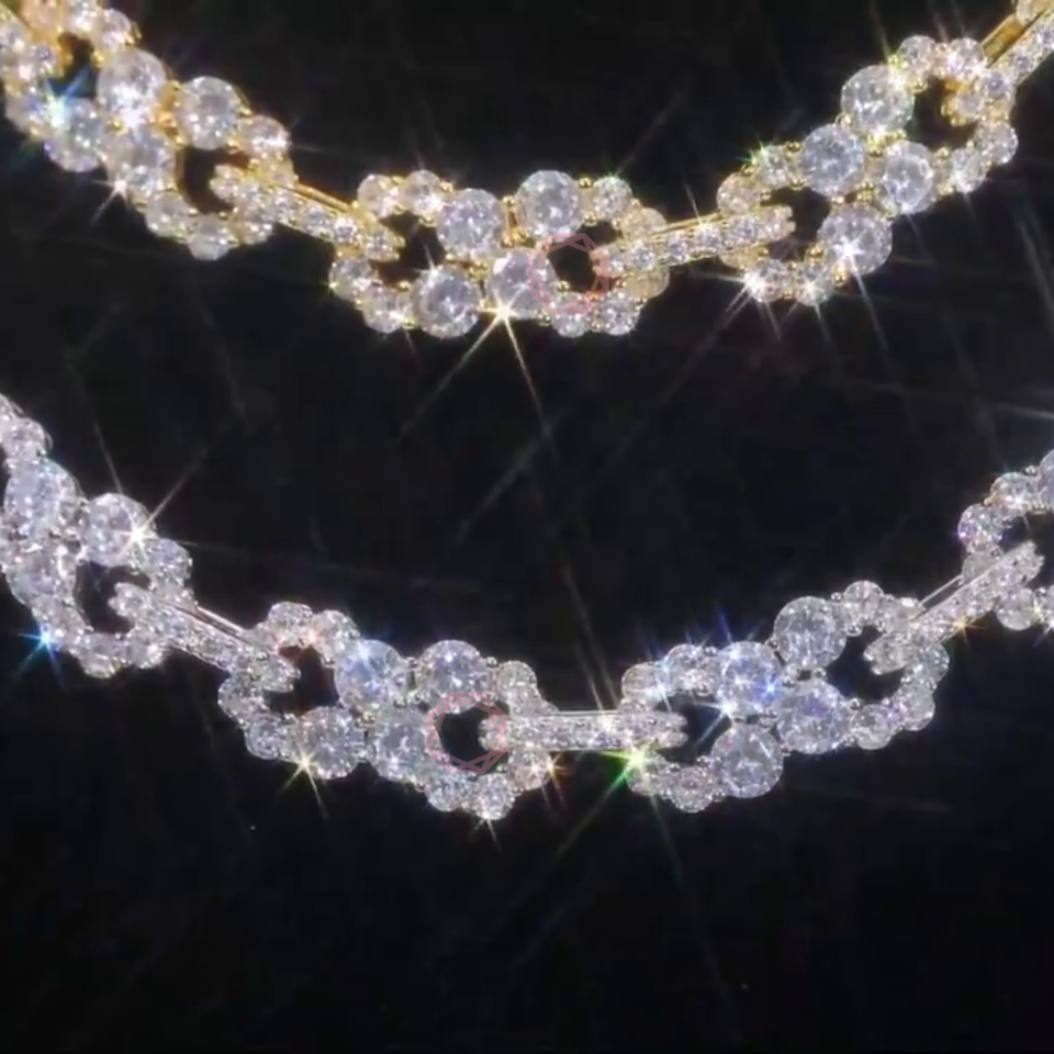 925 Sterling Silver Fine Gold plated VVS Natural Moissanite Lab Grown Diamond Hip-Hop Infinity Necklace Link Chain for Men/Women