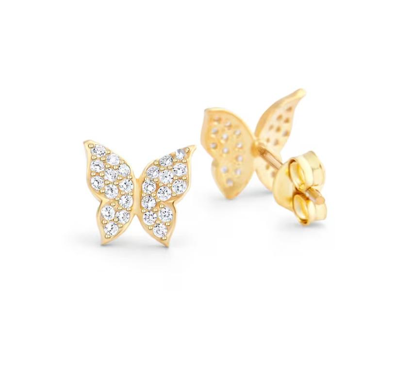 925 Sterling Silver Fine Jewelry Butterfly Stud Earrings Gold Vermeil & Rhodium Plated for Anniversary Party Gift