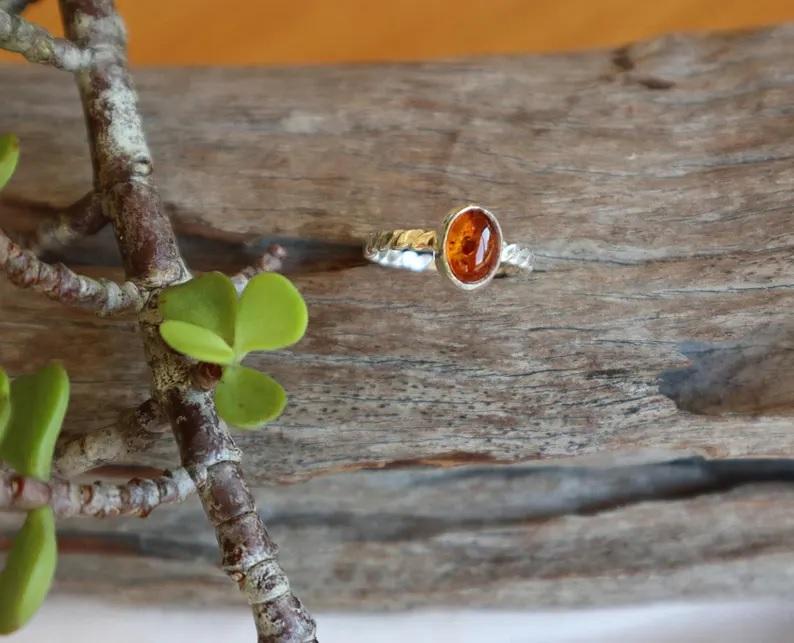 925 Sterling Silver Wedding Ring Classic Baltic Amber Gemstone Pear Oval Cut Fine Jewelry Bezel Setting for Valentine's Day