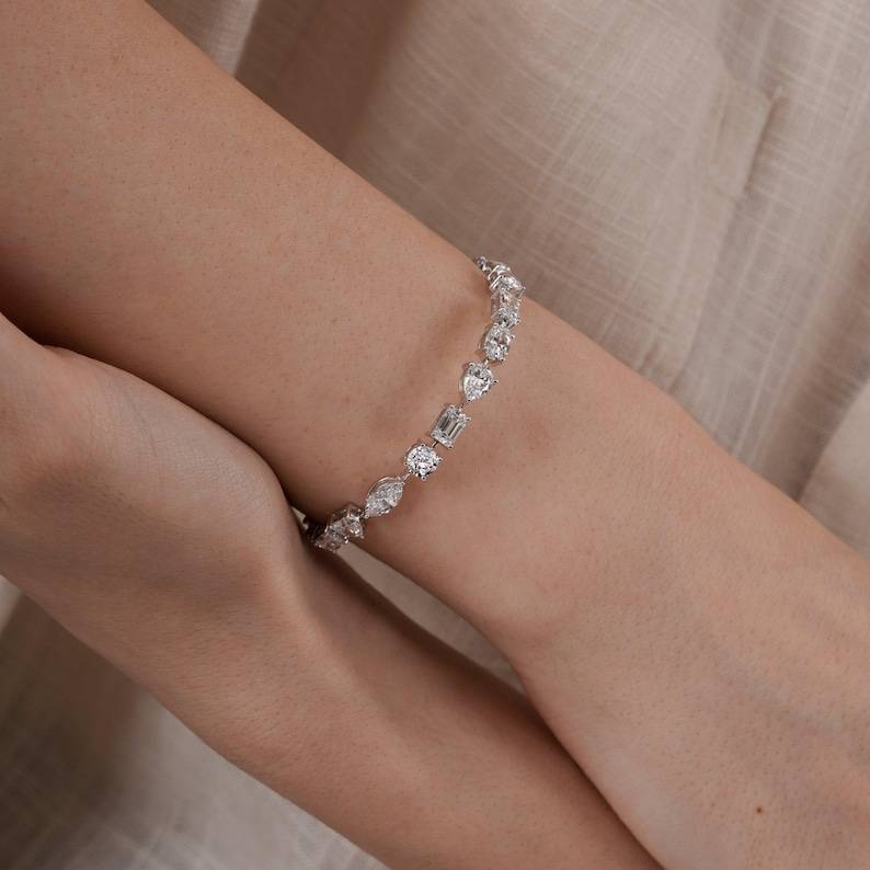 925 Sterling Silver Fine Multi shape Moissanite Cut Diamond Tennis Bracelet For Womens Jewelry Wedding Gift For Partner