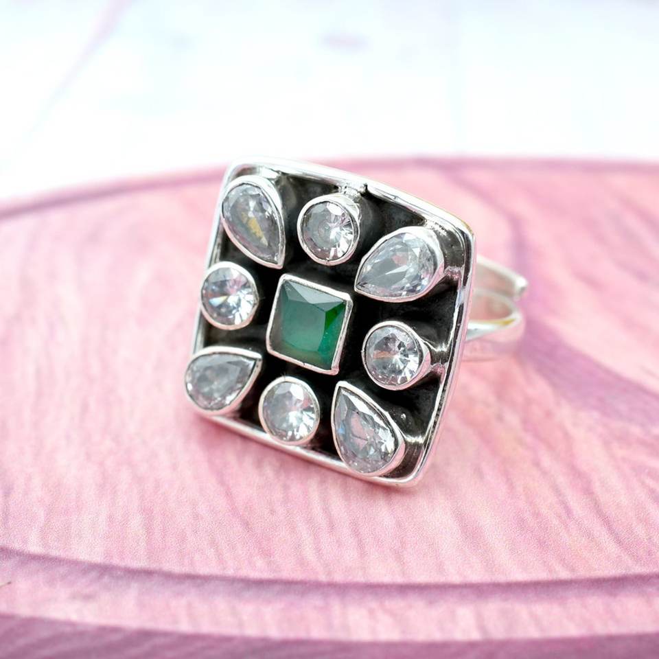 925 Sterling Silver Fine Ring Handmade Cubic Zirconia Green Onyx Gemstone Jewelry for Women Perfect Gift for Her-R0046-GS