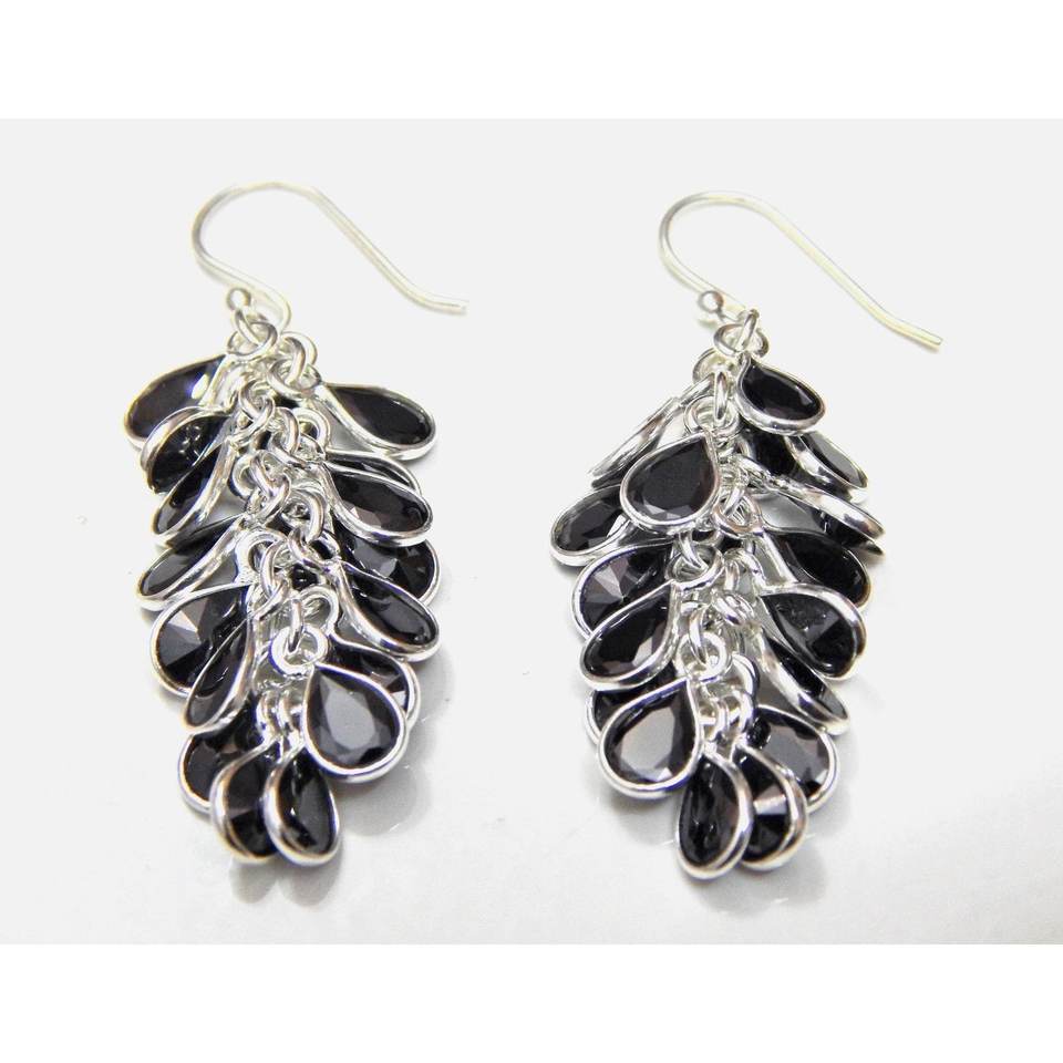 925 Sterling Silver Fine Stud Earrings Handmade Natural Genuine Black Onyx Wedding Grapes Bunch Gemstone Earjewel