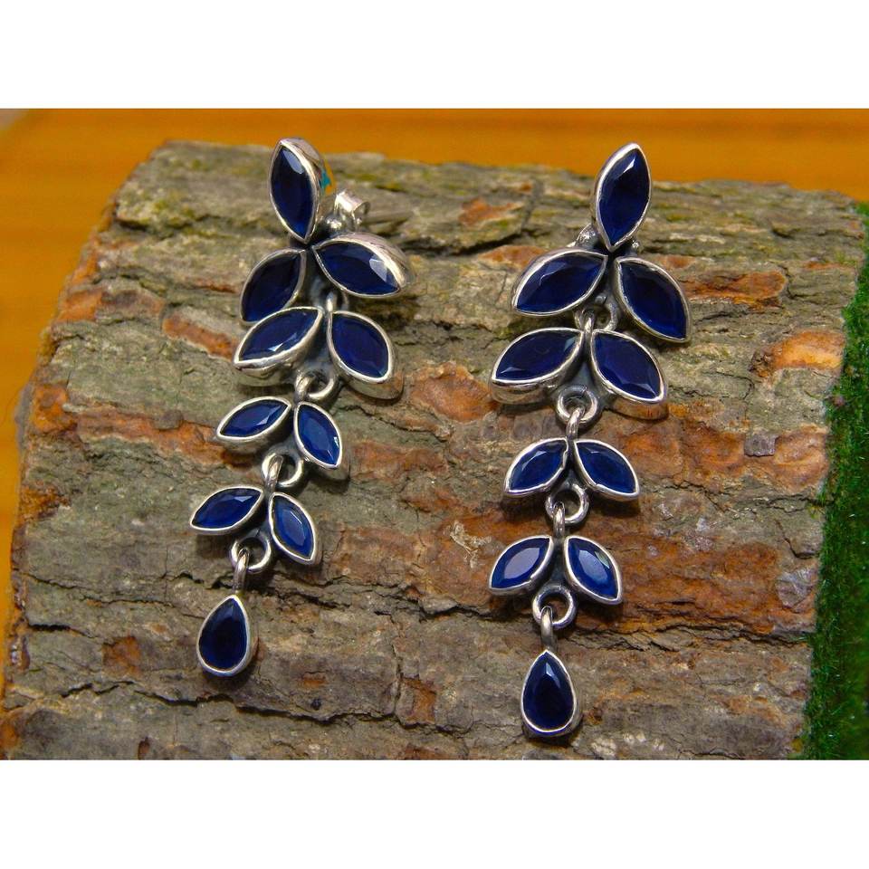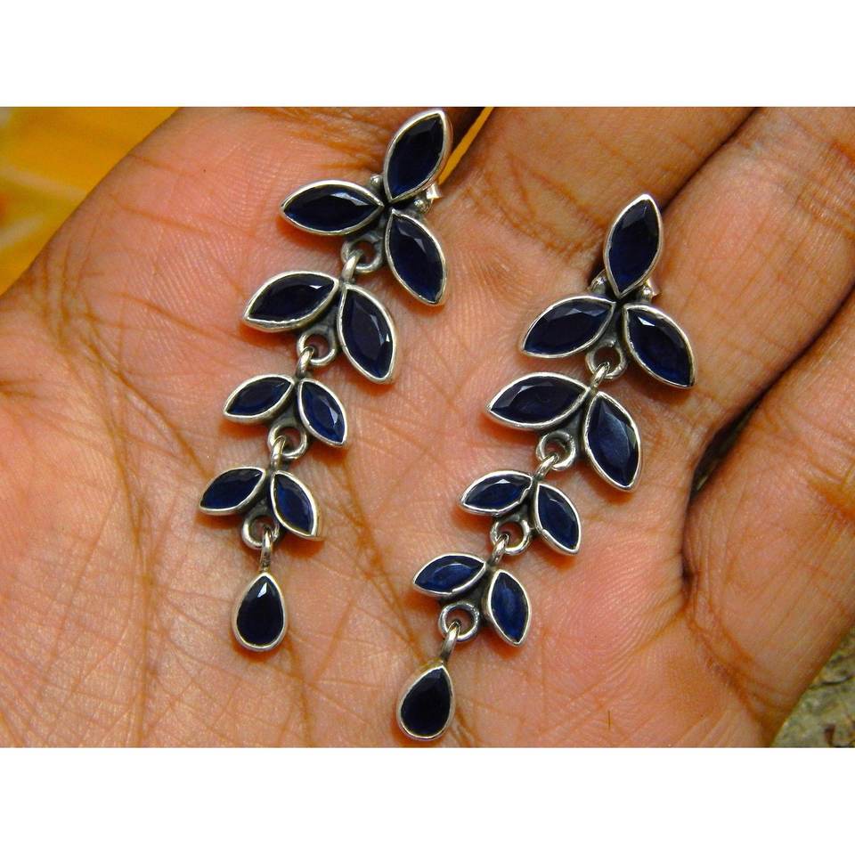 925 Sterling Silver Floral Stud Earrings Natural Blue Sapphire Lightweight Gemstone Jewelry for Anniversary Fashionable