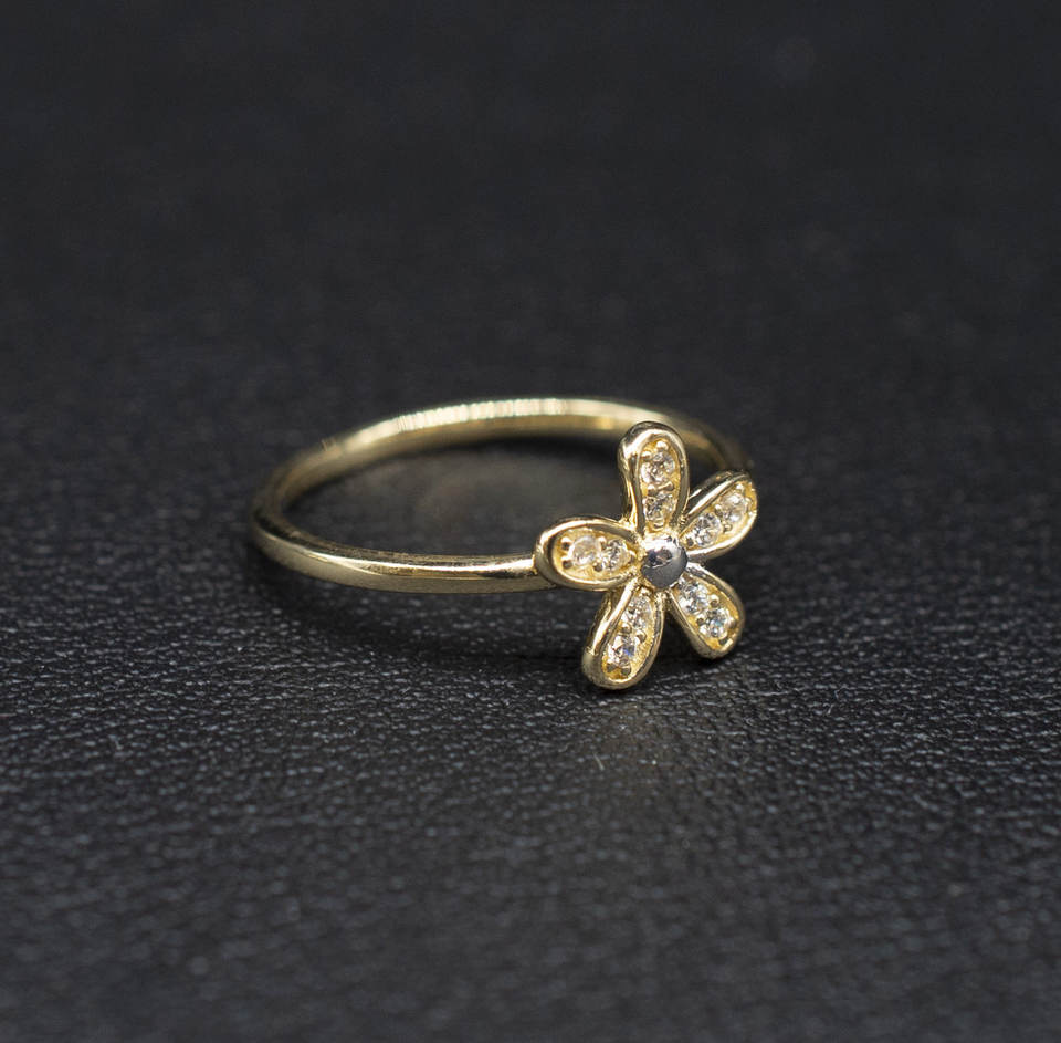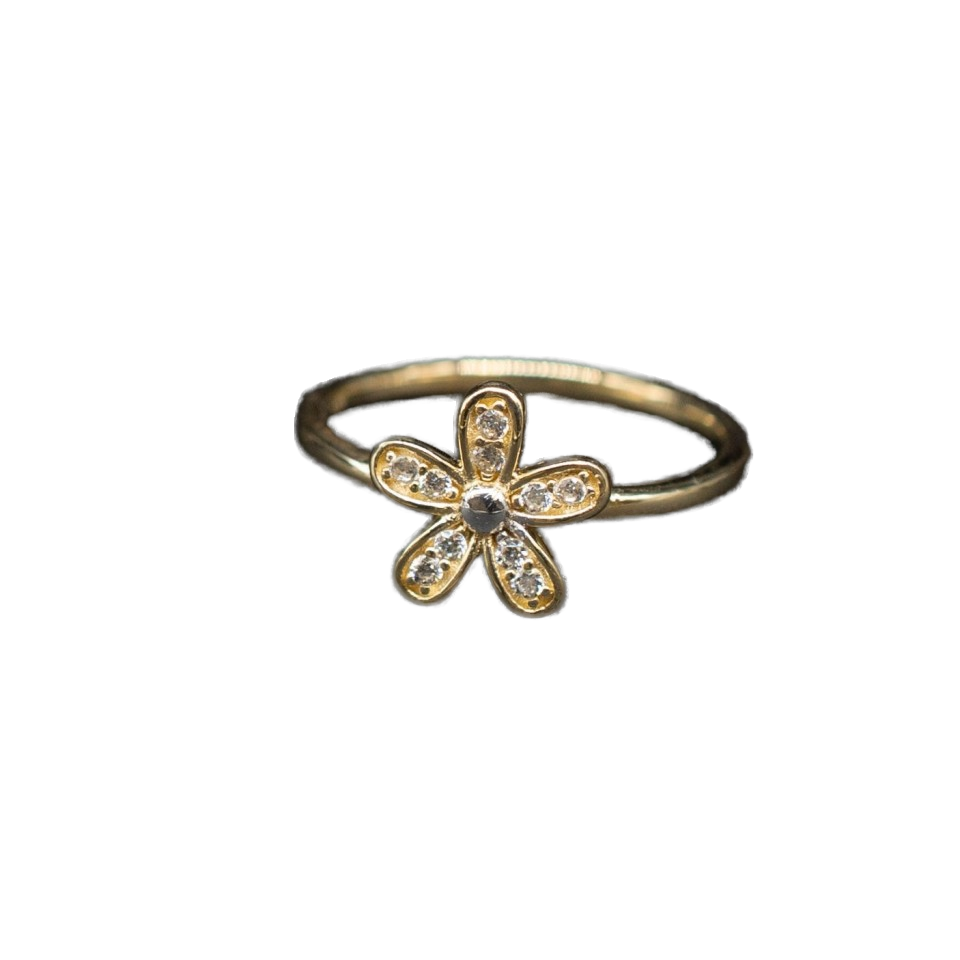 925 Sterling Silver Flower Ring 14k Gold Plated CZ Stone Floral Ring Statement Ring All Sizes Mothers Day Jewelry