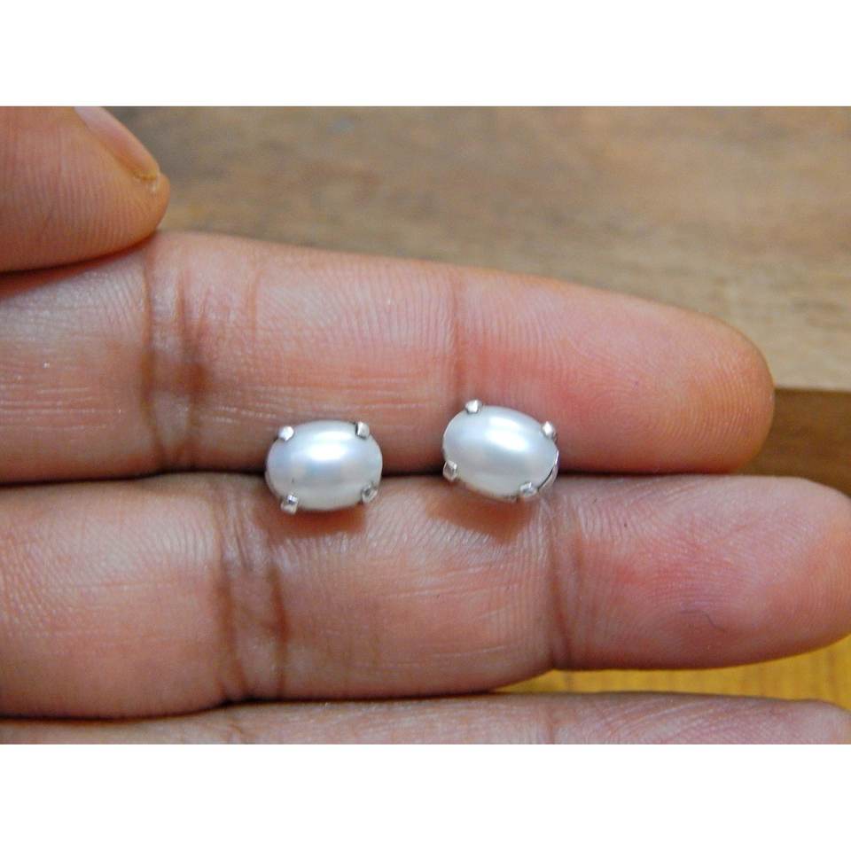 925 Sterling Silver Freshwater Pearl Earring Stud Natural White Gemstone Jewelry Elegant Gift for Her-E0043-GS