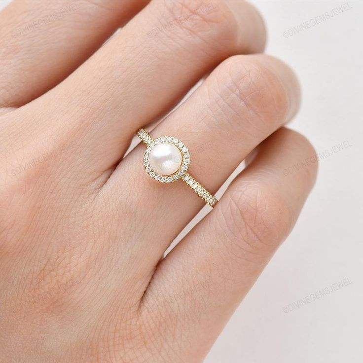 925 Sterling Silver Freshwater Pearl Ring with Zircon Halo IGI Certified Rhodium Plated Wedding Elegant Womens Jewelry All Sizes