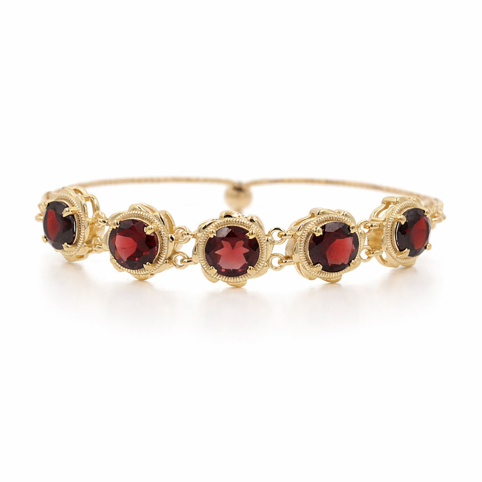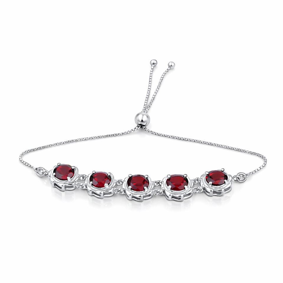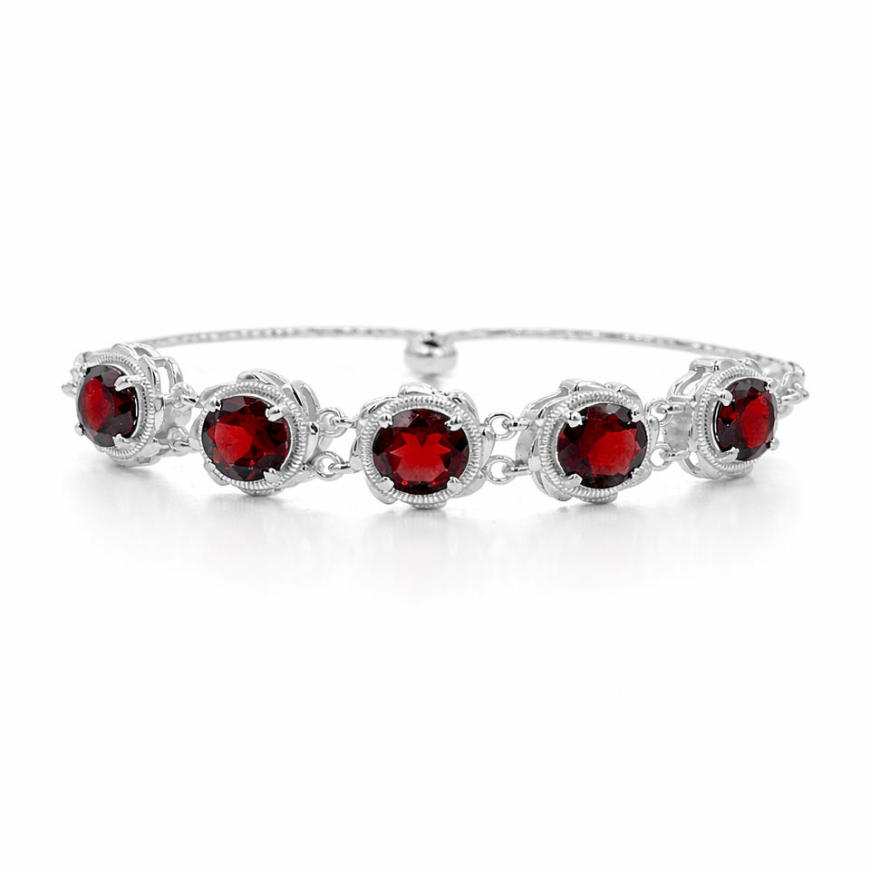 925 Sterling Silver Garnet Round Stone Charm Bracelet 5 Stone Link Design Gold & Rhodium Plated