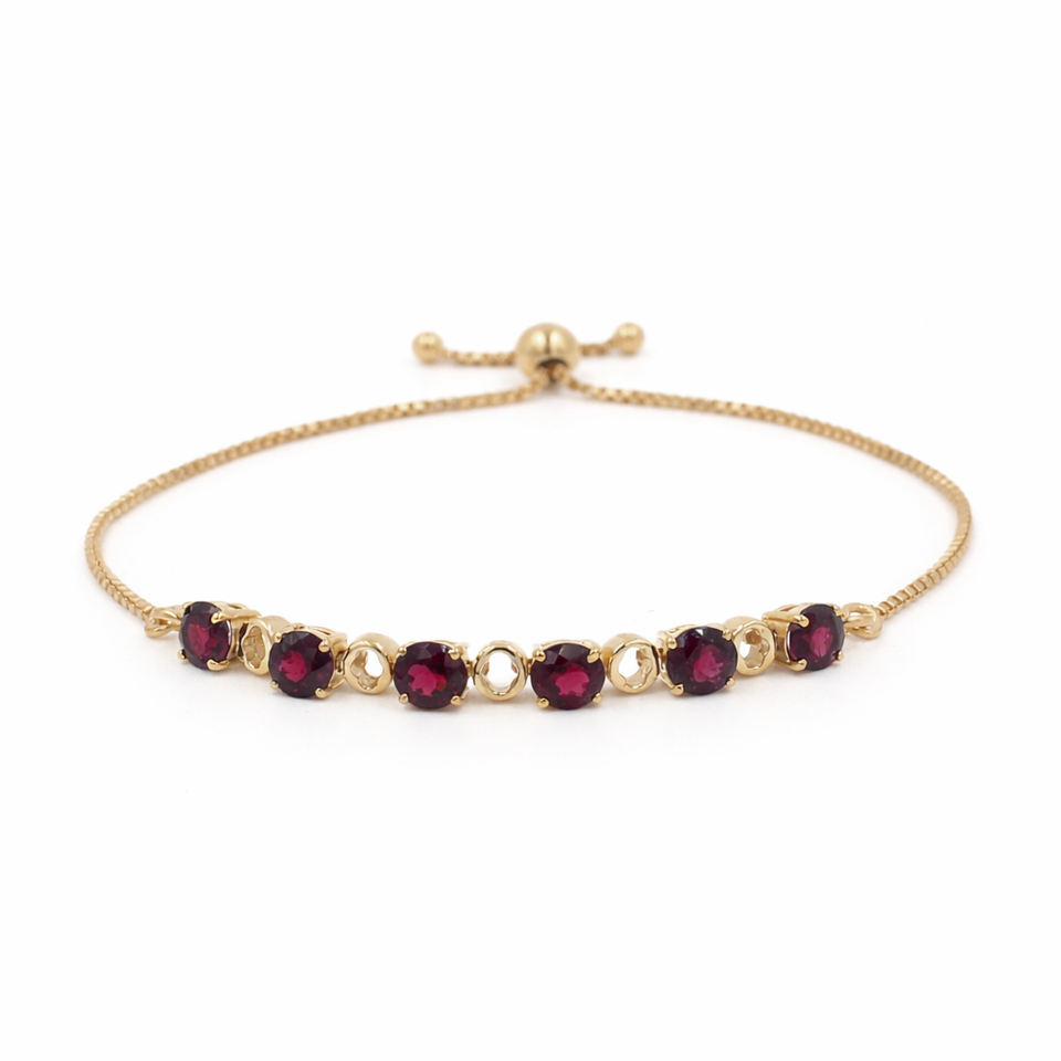 925 Sterling Silver Garnet Six Stone Link Charm Bracelet Round Gemstone Gold & Rhodium Plated