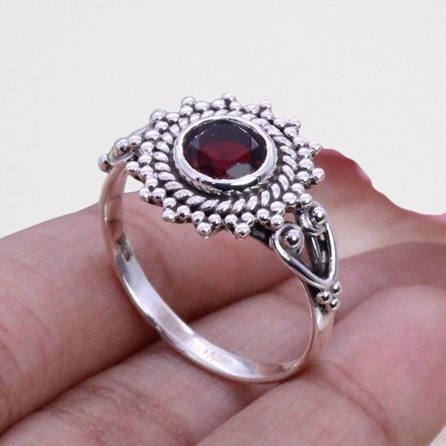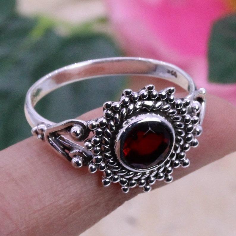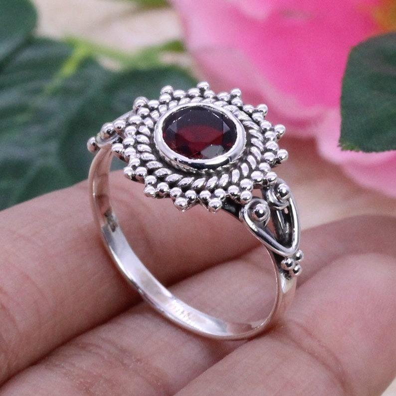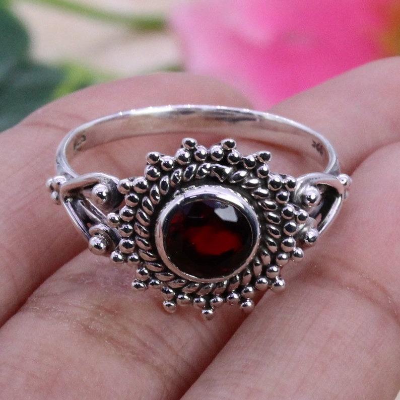 925 Sterling Silver Garnet Spinner Ring with Prong Setting Trendy Party Fashion Jewelry Handmade Gemstone Ring