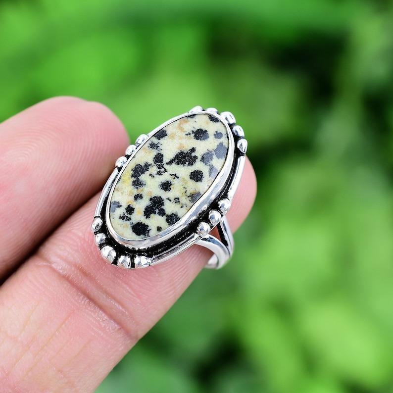 Trending 925 Sterling Silver Handmade Dalmatian Gemstone Ring Jewelry 925 Stamped Best Quality Wedding Gift Ring Jewelry