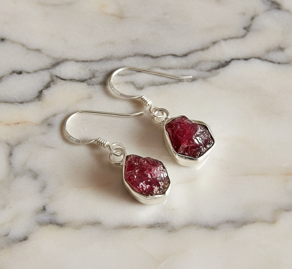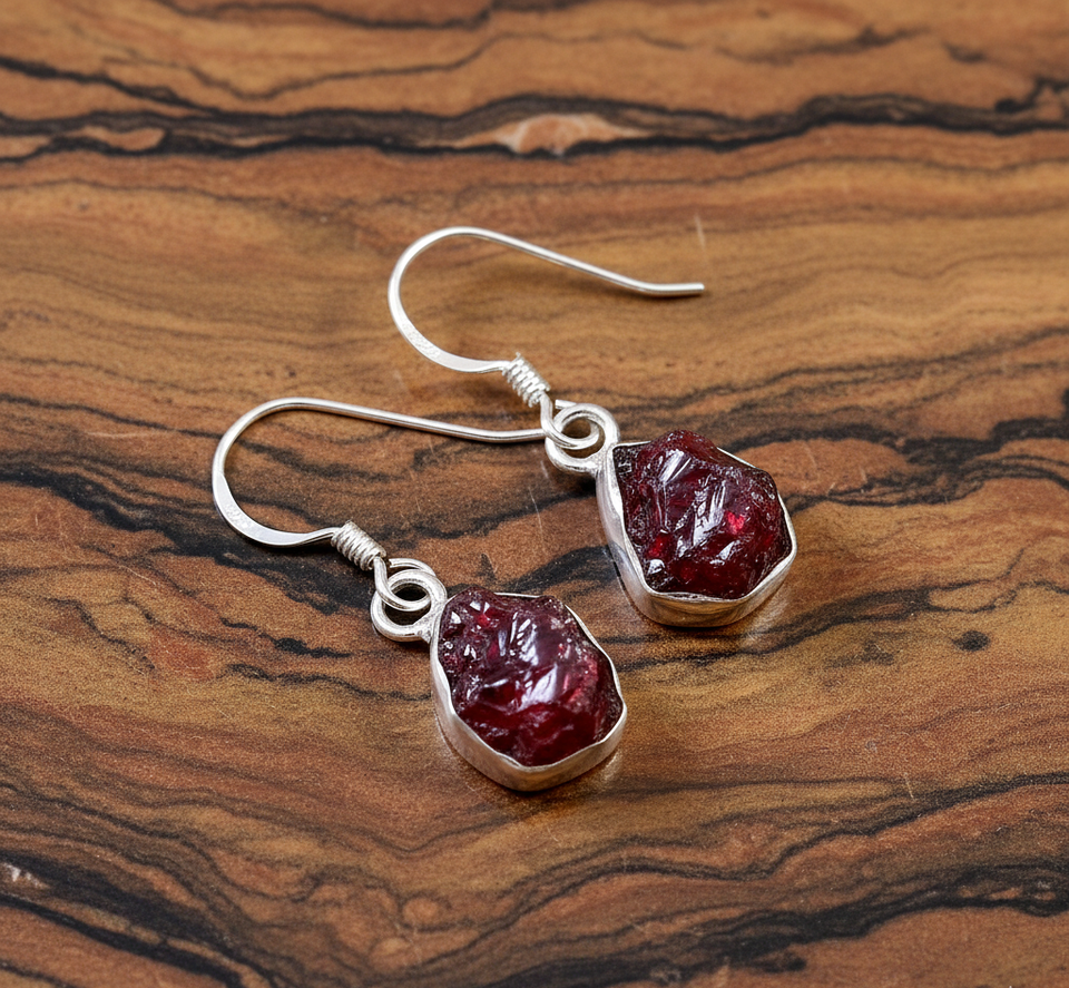 925 Sterling Silver Gold Plated Bohemian Raw Garnet Gemstone Drop Earrings for Women-Wedding & Party Gift