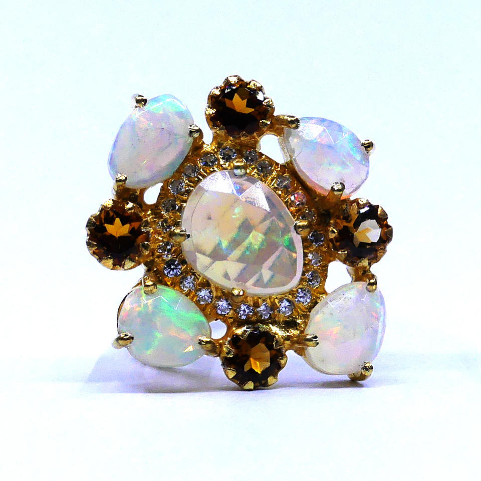 925 Sterling Silver Gold Plated Christian Classic Wedding Ring White Rainbow White Topaz Multi Tourmaline Stones Invisible