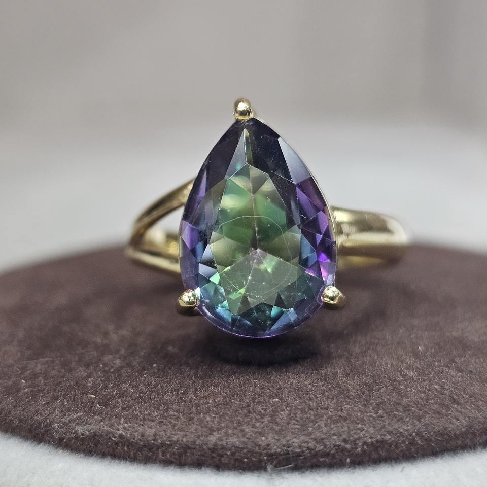 925 Sterling Silver Gold Plated Excellent Quality Teardrop Shape Natural Mystic Topaz Gemstone Handmade Eternity Vermeil Ring