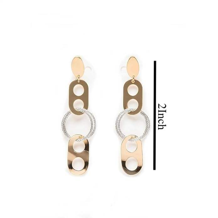 BRIA by SAAR 925 Sterling Silver Gold-Plated Geometric Dangle Earrings Women Dual-Tone Oval Textured Circle Long Drop Design