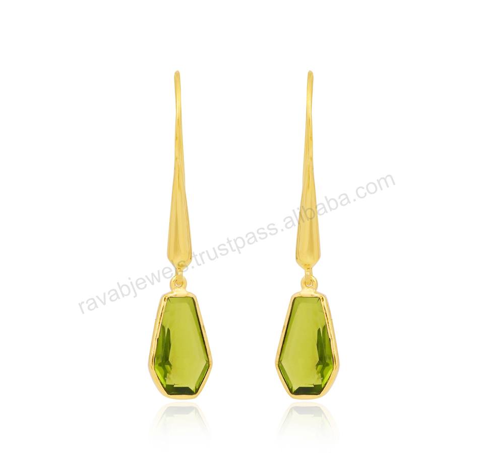 925 Sterling Silver Gold Plated Handmade Peridot Hydro Quartz Coffin Cut Dangle Earrings for Wedding Party Fine Gift For Women