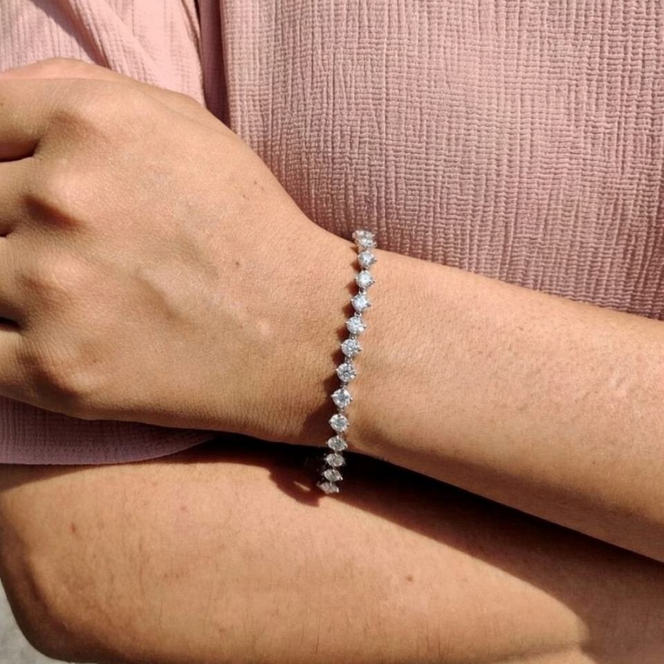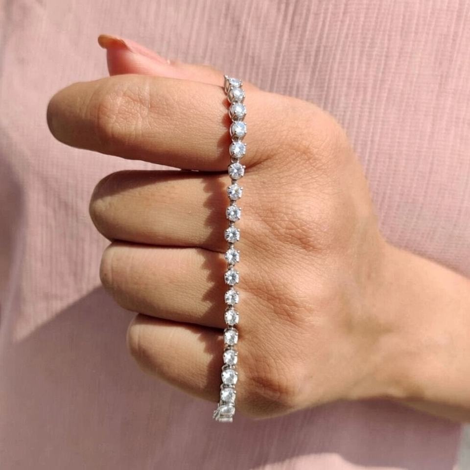 925 Sterling Silver Gold Plated Moissanite Tennis Bracelet Round Cut Iced Out Luxury Unisex