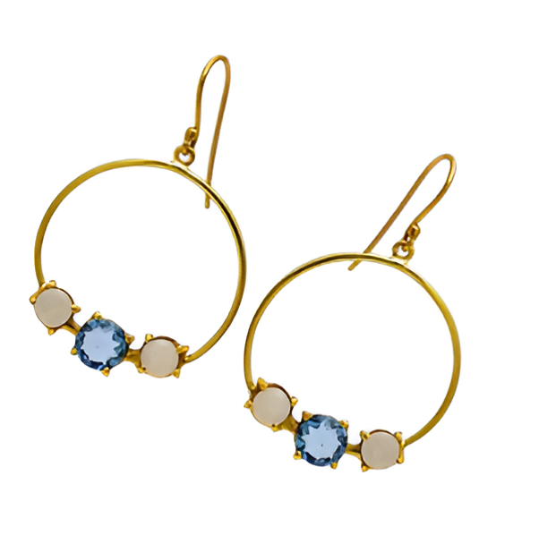 925 Sterling Silver Gold Plated Moonstone Quartz Ear Wire Dangle Earrings Trendy Fashionable Earring for Anniversary, Wedding.