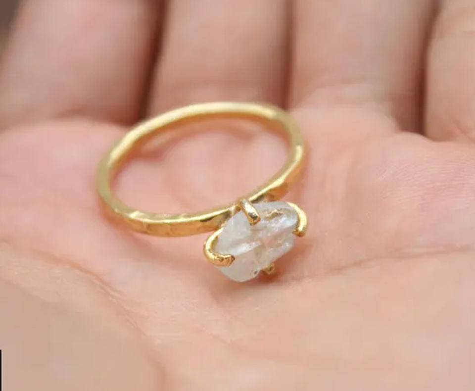 925 Sterling Silver Gold Plated Natural White Druze Gem Ring 8X10mm Raw Shape Prong Set For Fashion Jewelry Set Anniversary Gift