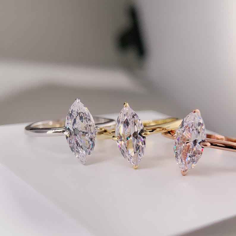 925 Sterling Silver Gold Plated Original Moissanite Gemstone Engagement Ring Customizable Marquise Cut Fine Jewelry
