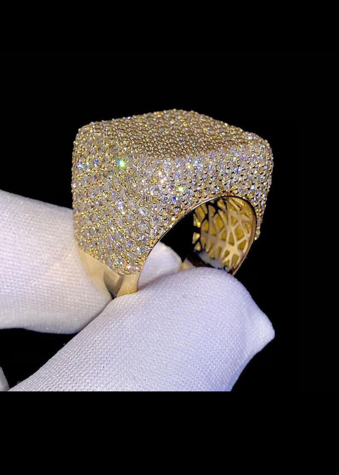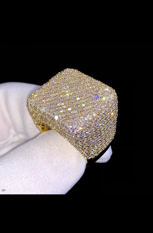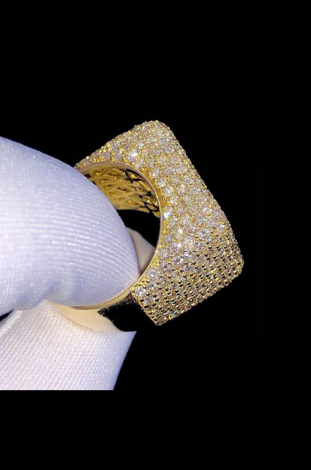 925 Sterling Silver Gold Plated Square Iced Out Moissanite Claw Setting Women's Ring Luxury Hip Hop Jewelry