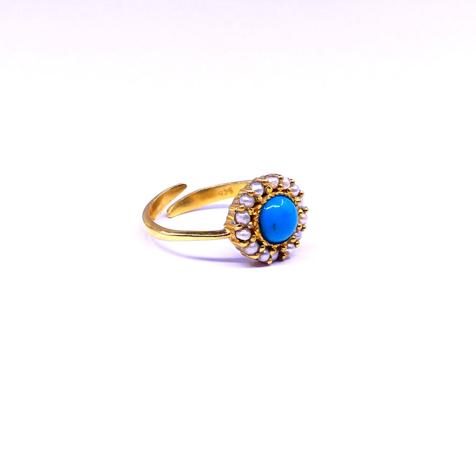 925 Sterling Silver Gold Plated Turquoise Pearl Ring