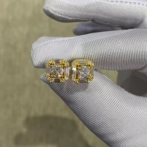925 Sterling Silver Gold Rhodium Plated GRA Certified VVSD Color Cushion Cut Moissanite Gemstone Screw Back Stud Earrings Bulk"