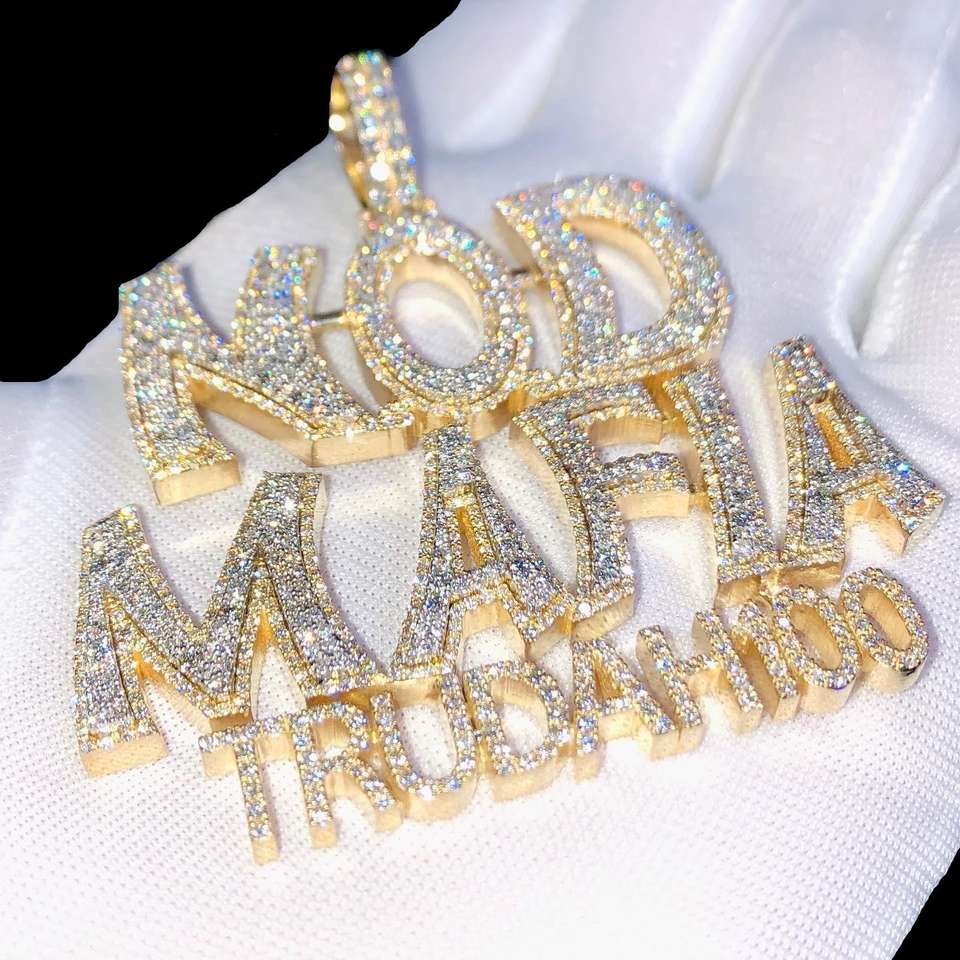 925 Sterling Silver Gold & Rhodium Plated Moissanite Name Pendant Custom Personalized Iced Bling Hip Hop Style Unisex Gift
