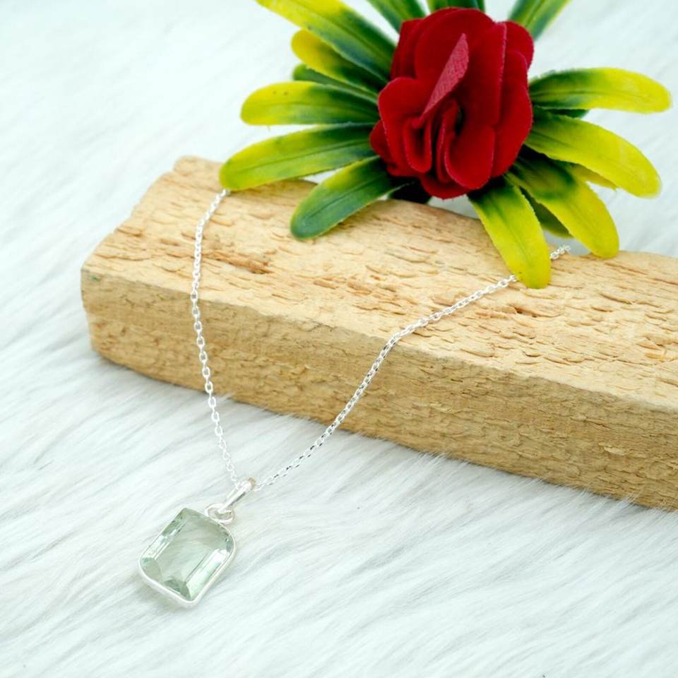 925 Sterling Silver Green Amethyst Necklace Faceted Gemstone with Gold Wedding Gift for Her