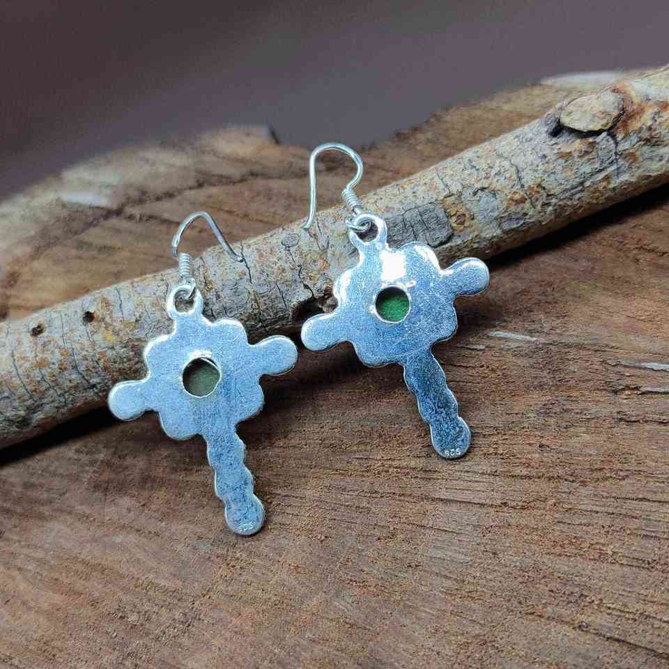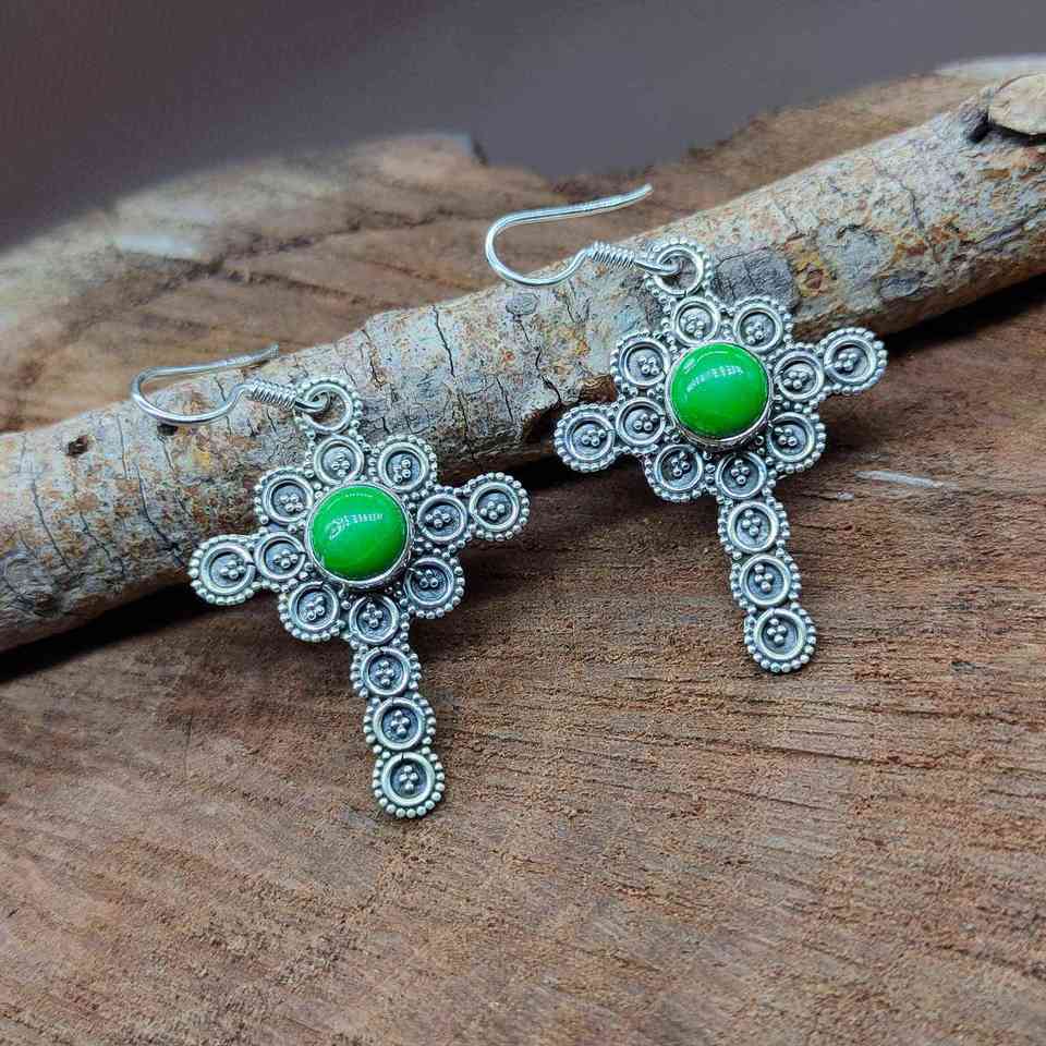 925 Sterling Silver Green Copper Turquoise Cross Earrings With Hoops At Factory Price Statement Christmas Earrings