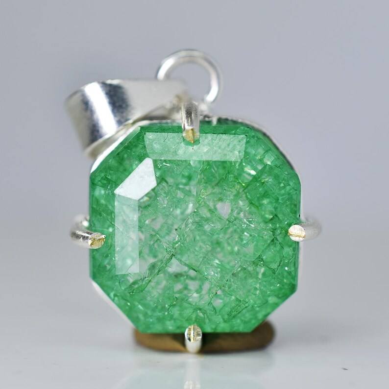 925 Sterling Silver Children's Green Emerald Pendant 44.10 Ct Natural Square Cut Gemstone High Quality IGI Certified Jewelry