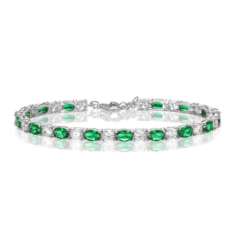 925 Sterling Silver Green Emerald Tennis Bracelet For Women And Teenage Girls With Oval Green And Round Clear CZ