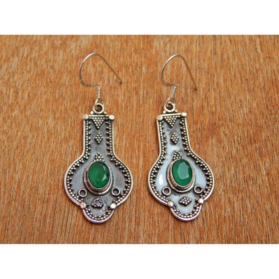 925 Sterling Silver Green Onyx Handmade Vintage Dangle Earrings Fine Jewelry Gift Item E0096-GS