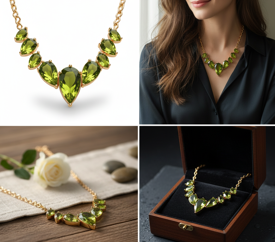 925 Sterling Silver Green Peridot Necklace 18K Gold Plated Natural Gemstone Handmade Jewelry for Women and Girls