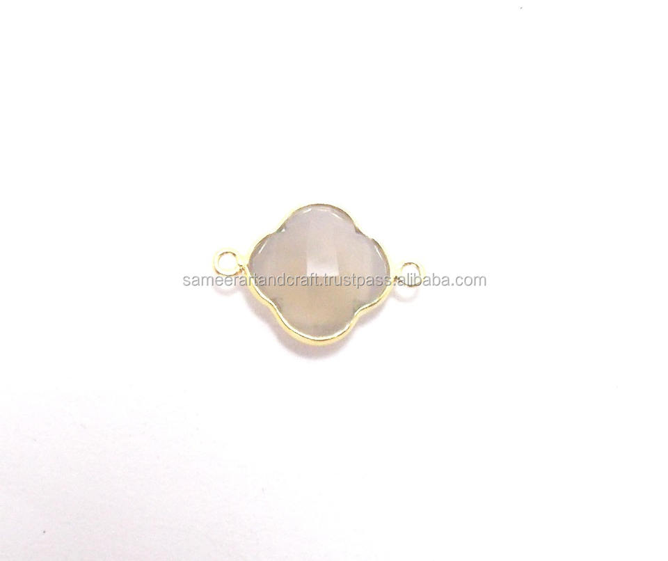 925 Sterling Silver Grey Chalcedony Natural Gemstone Handmade Jewelry Bezel Birthstone Boho Connector