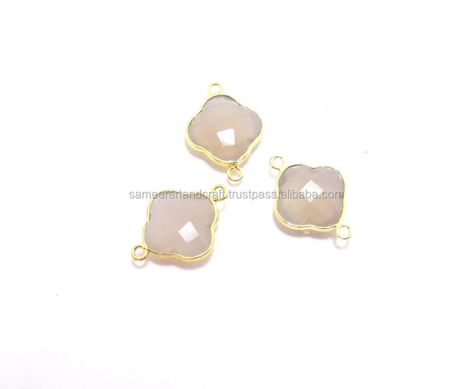 Handmade Grey Chalcedony 925 Sterling Silver Bezel Connector