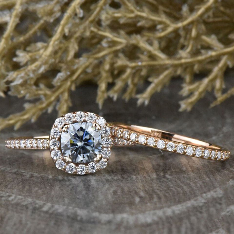 925 Sterling Silver Half Diamond Wedding Band Cushion Cut Gray Moissanite Engagement Set Moissanite Halo Wedding Ring Parties